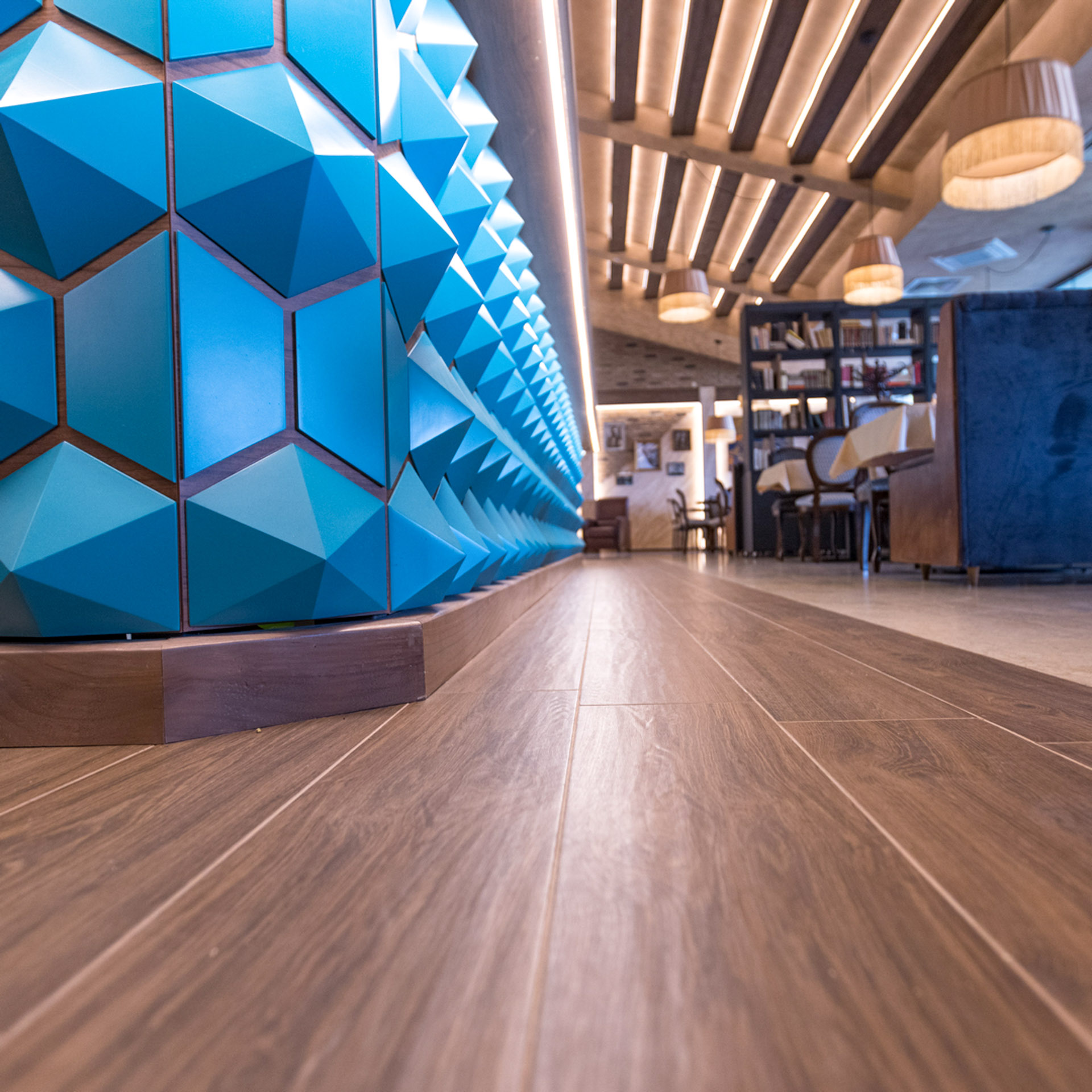 • Общие зоны: Прочные напольные покрытия, рассчитанные на постоянное движение гостей