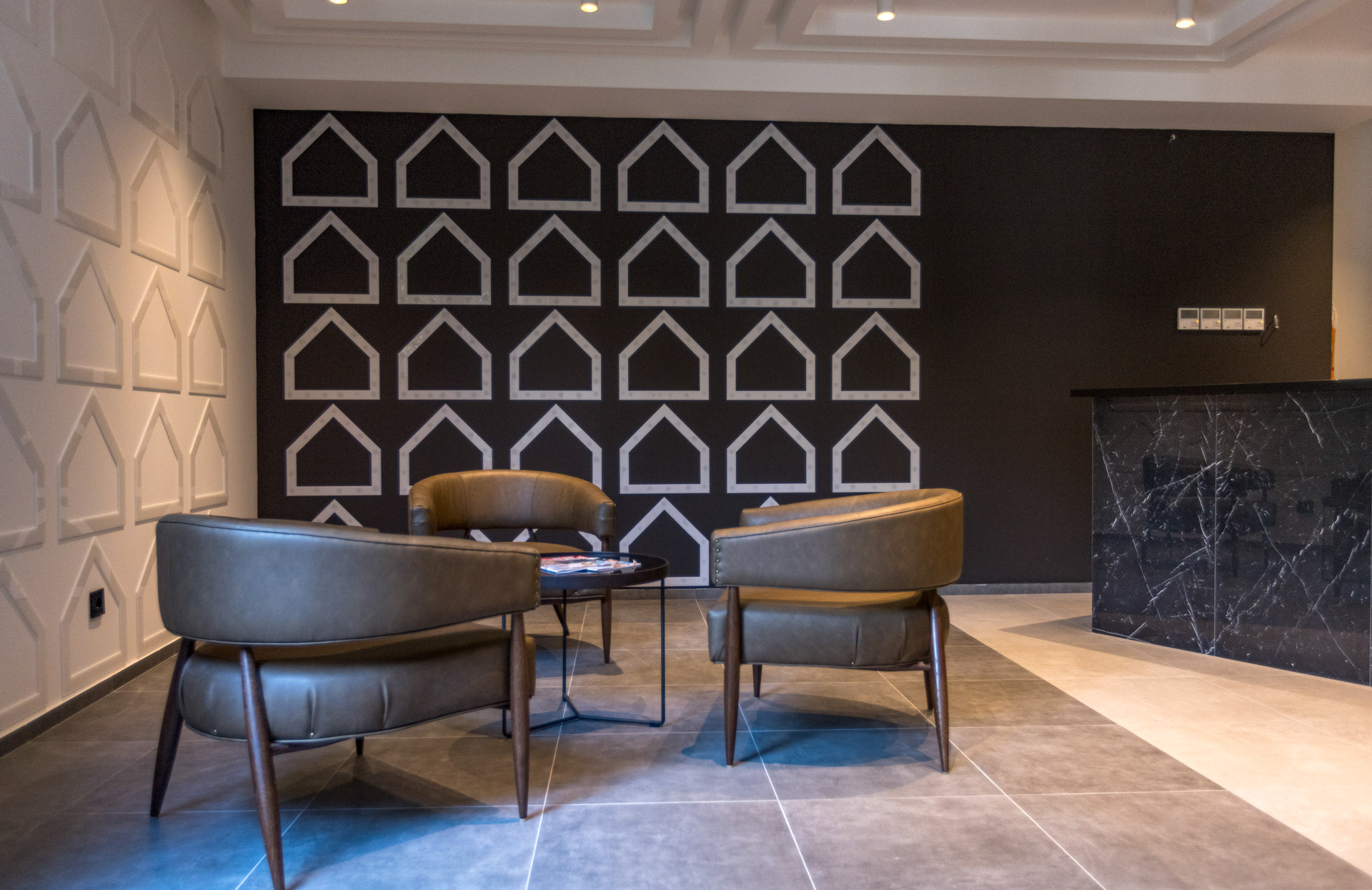 • Ресепшн и лобби: Приветственные зоны входа, создающие положительное первое впечатление