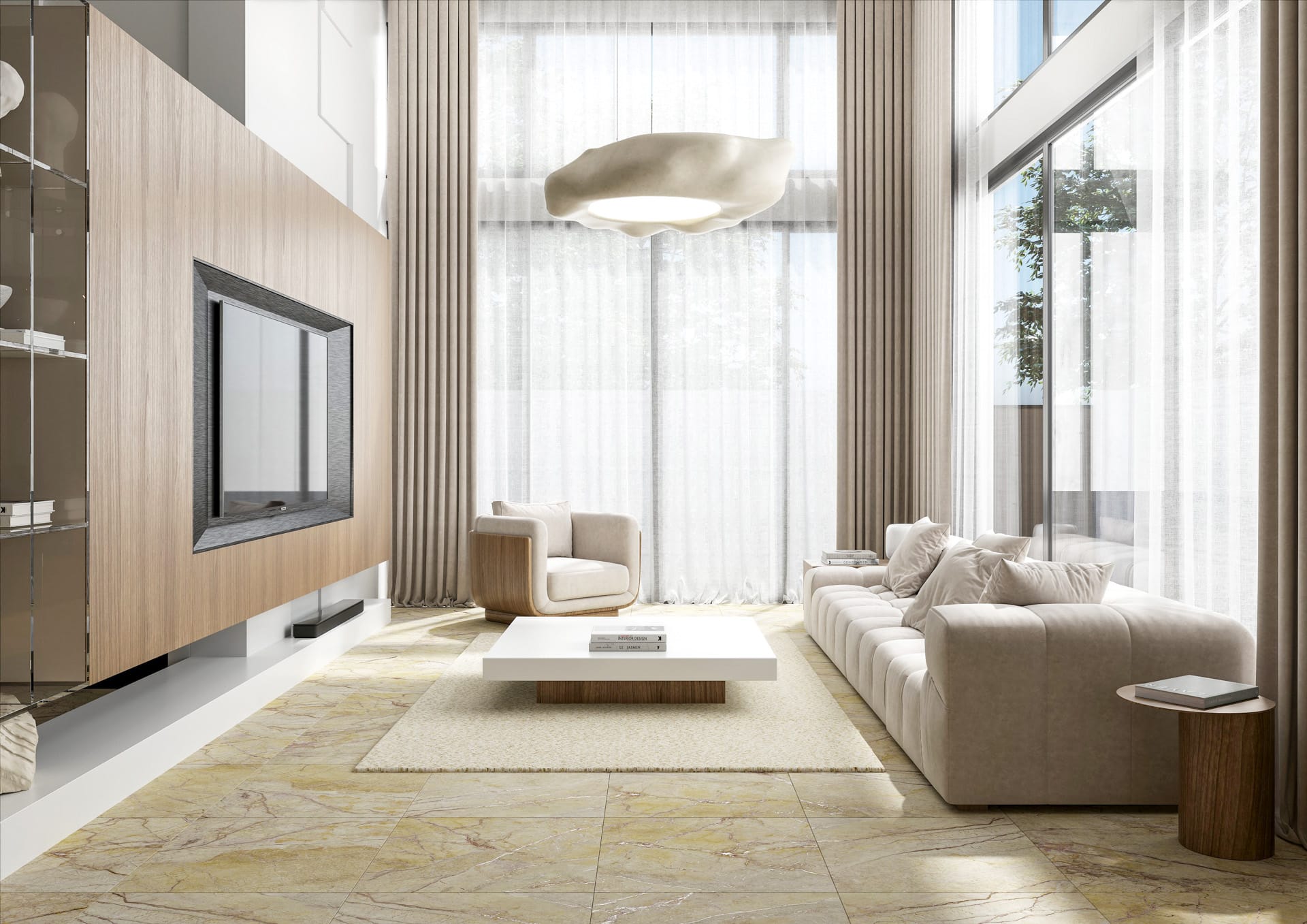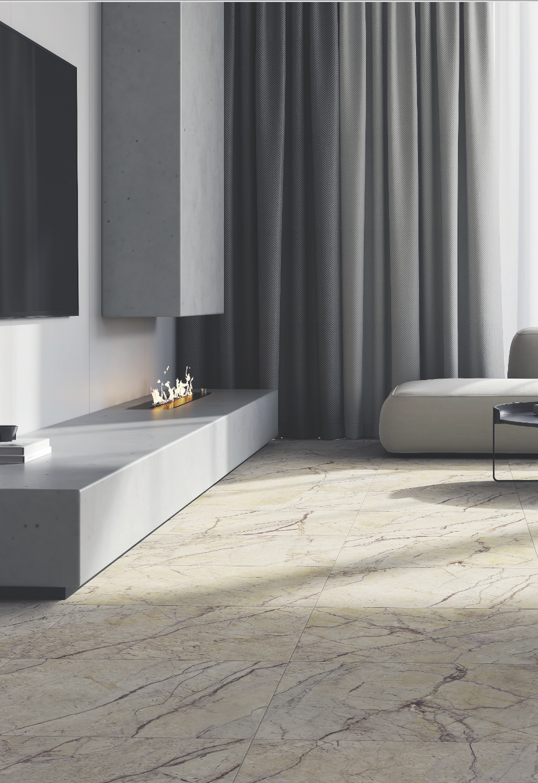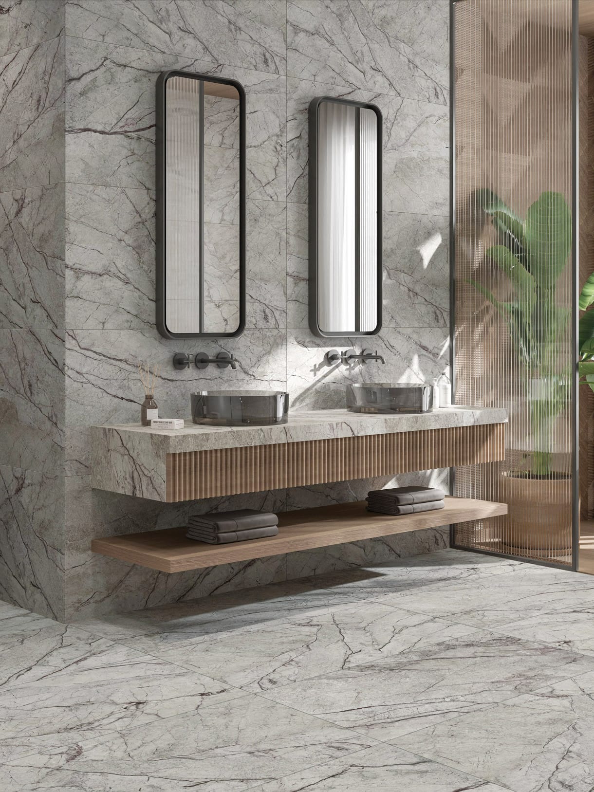 The Bidisar collection represents the Bidisar stone through a tile, an elegant marble that stands out with its appearance. In warm or cool tones, the tile is underlined with interwoven veins that bring dynamic and shine to the environment. Its beauty is best highlighted when you wish to emphasize individual elements in the space.